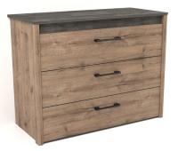 В комоде малом Денвер располагаются три выдвижных ящика. Шариковые направляющие надежно удерживают ящики при открывании.