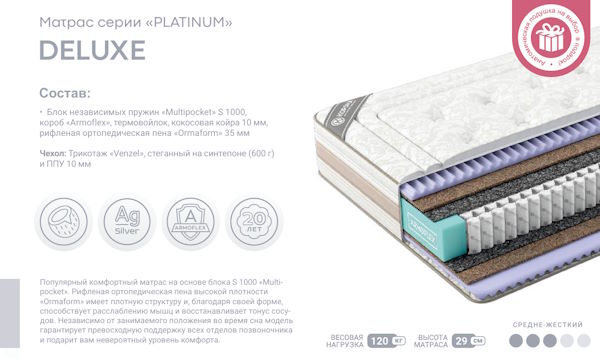 | Тип матраса | Пружинный - Multi Pocket S1000 |