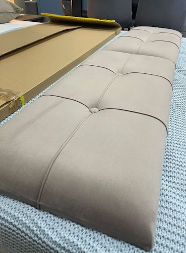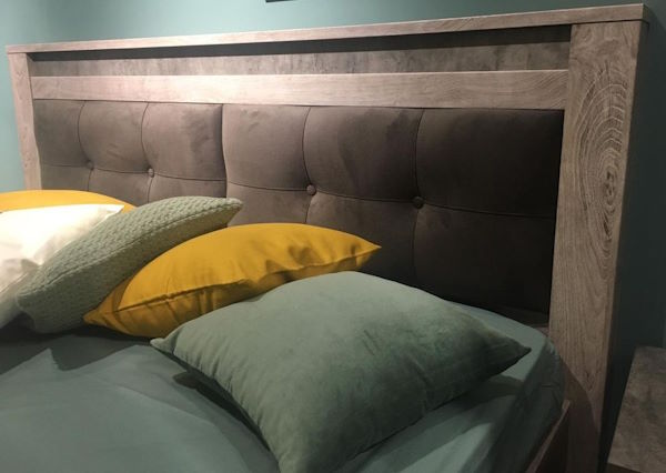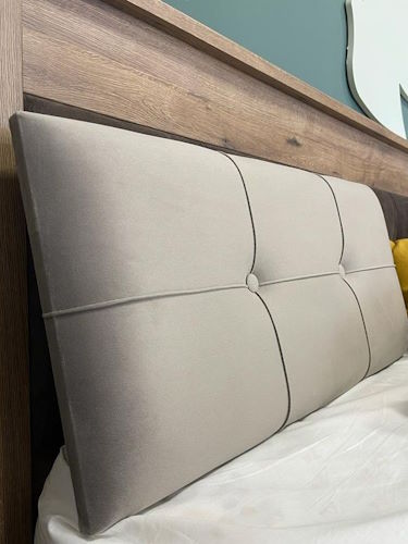 Мягкая вставка на тканевой основе прикрепляется к изголовью кровати 1600 Денвер. Ткань велюр Sound Dark и велюр Confetty Mocco.