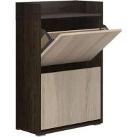 Обувница Танго - компактная тумба для хранения обуви займет немного места в прихожей, но поможет эффективно разместить и облегчить доступ к нескольким парам обуви с помощью двух автономно откидывающихся секций. Обувница имеет регулируемые опоры. Материал изготовления: ЛДСП в нескольких комбинациях тонировок.