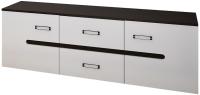 Тумба состоит из двух распашных шкафчиков с полками и двух выдвижных ящиков.